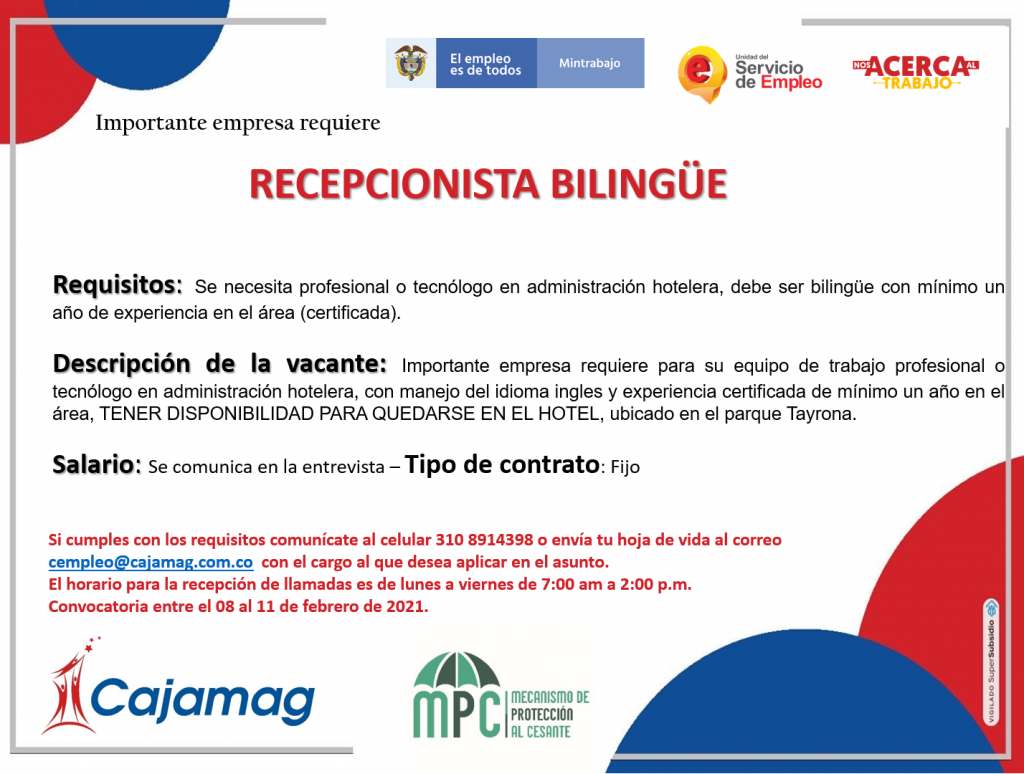 Si cumples con los requisitos comunícate al celular 310 891 4398 o envía tu hoja de vida al correo electrónico