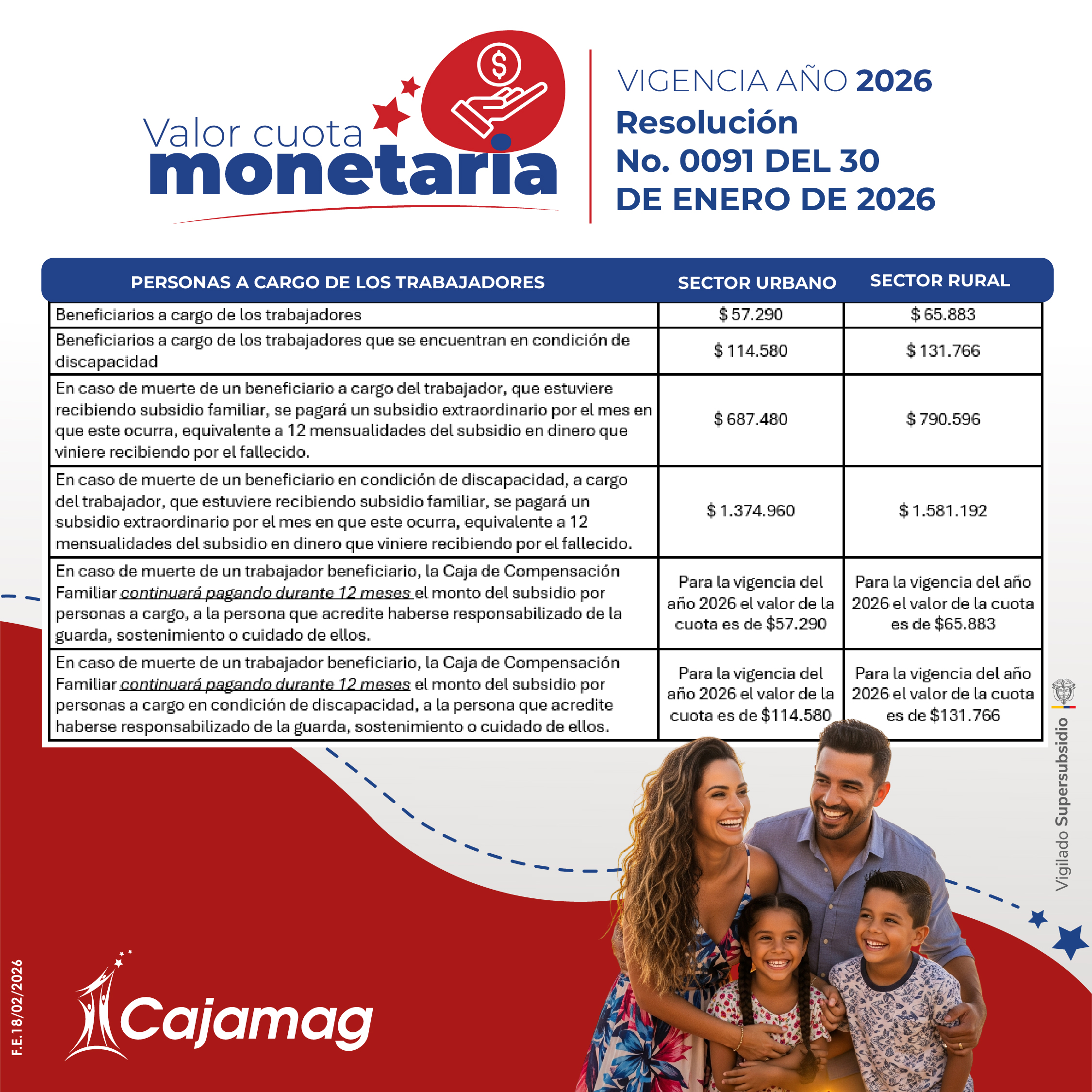 En CAJAMAG cuidamos de nuestros afiliados y sus familias. Si eres trabajador afiliado con ingresos menores a 4 SMMLV podrás solicitar el subsidio monetario para cada una de las personas a cargo.